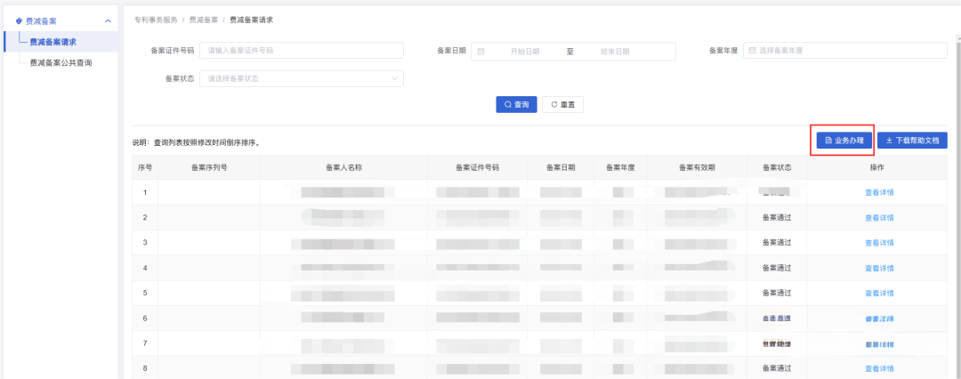 新“专利业务办理系统”上线后,费减备案只能由申请人自行办理,代理机构将无法进行代办。