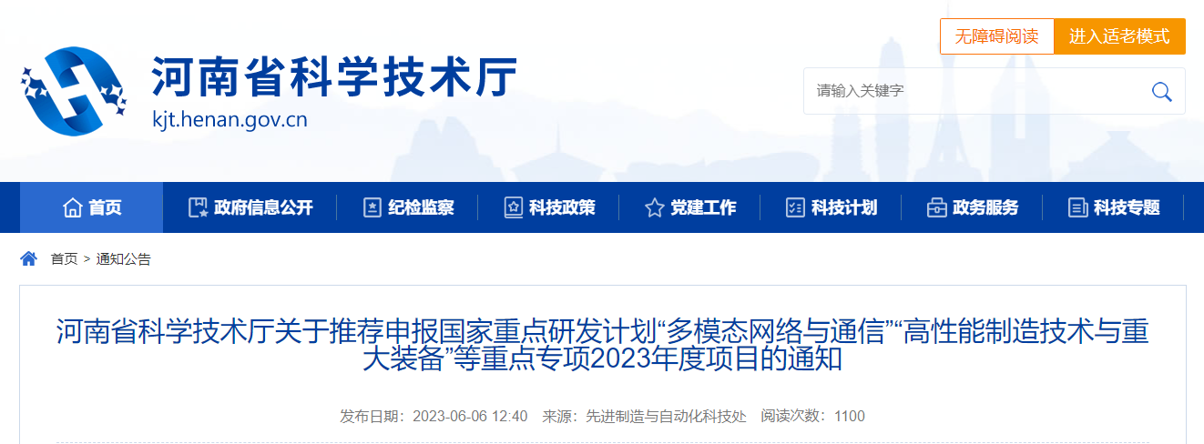 2.科技部关于发布国家重点研发计划“高性能制造技术与重大装备”等6个重点专项2023年度项目申报指南的通知