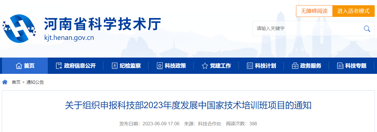 近日,科技部国际合作司发布了《关于组织申报2023年度发展中国家技术培训班项目的通知》(www.most.gov.cn/tztg/202306/t20230605_186454.html),启动了2023年度发展中国家技术培训班项目申报工作。