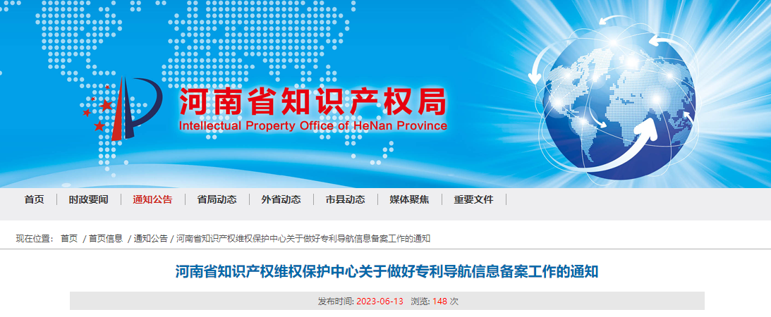 为深入贯彻落实党的二十大精神,按照《“十四五”国家知识产权保护和运用规划》部署,推进实施专利导航工程,完善专利导航支撑服务产业创新发展工作机制,国家知识产权局开展了国家专利导航综合服务平台建设和信息备案工作。目前该平台已正式运行,网址为httpss://www.patentnavi.org.cn/。现将导航信息备案工作有关事项通知如下: