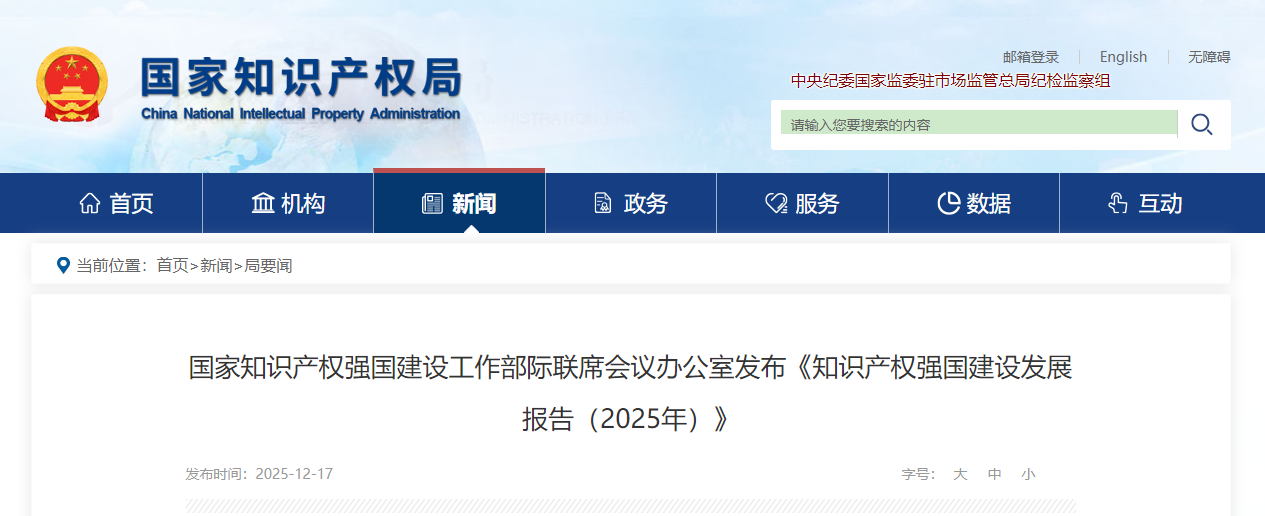 建设中国特色、世界水平的知识产权强国,是以习近平同志为核心的党中央作出的重大战略部署。为加快推进知识产权强国建设,深入实施《知识产权强国建设纲要(2021—2035年)》和《“十四五”国家知识产权保护和运用规划》,国家知识产权强国建设工作部际联席会议办公室会同有关方面编制完成《知识产权强国建设发展报告(2025年)》(以下简称《报告》)。