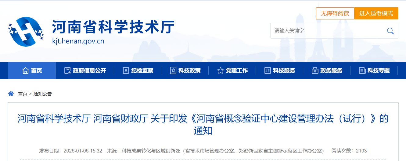 为进一步完善科技成果转化链条,加快构建创新应用场景,规范河南省概念验证中心运行管理,推动科技创新与产业创新深度融合,省科技厅、省财政厅研究制定了《河南省概念验证中心建设管理办法(试行)》。现印发给你们,请遵照执行。