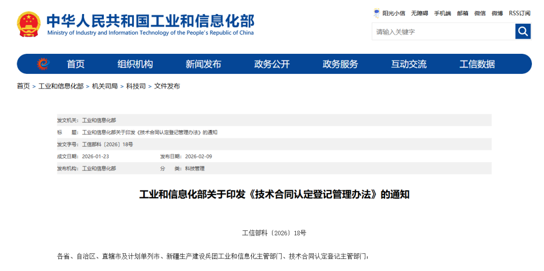 第十七条 工业和信息化部建设全国技术合同认定登记管理系统,增强信息化服务能力,推动提升认定登记工作效 率。