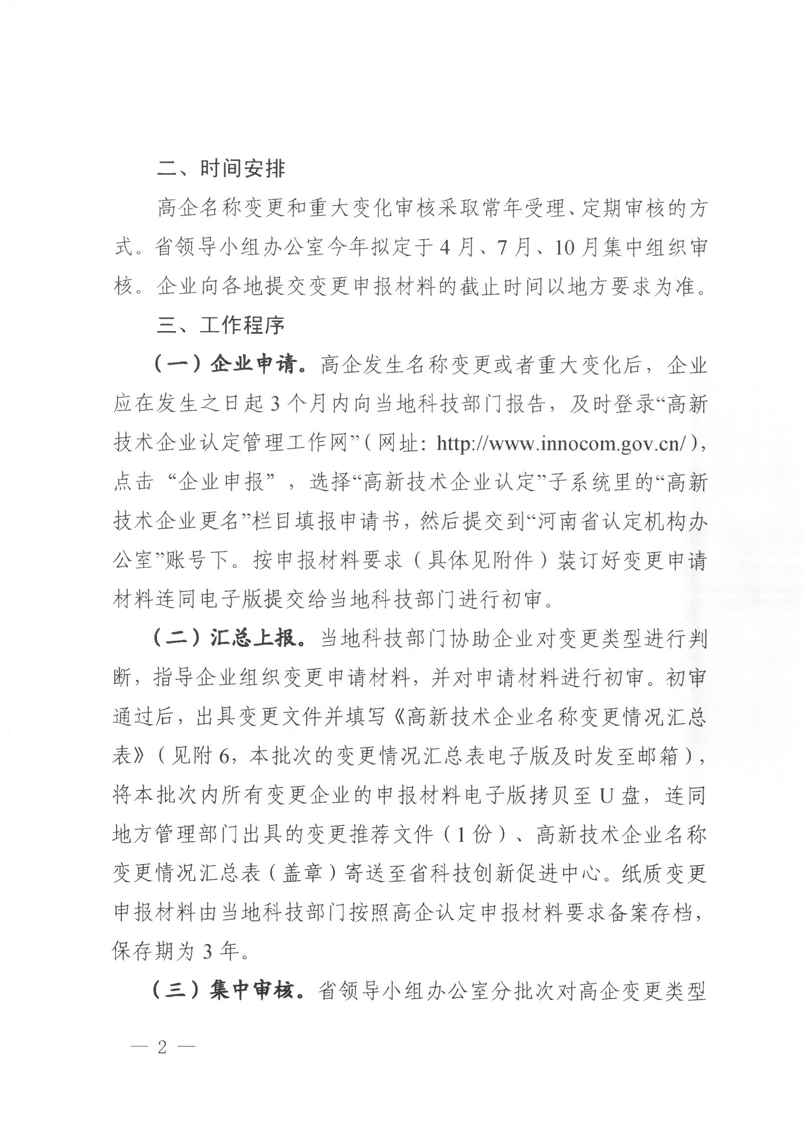 (二)按照《省通知》要求,各县、高新区负责本辖区高新技术企业变更工作,请各县、高新区合理安排时间,保证工作进度。