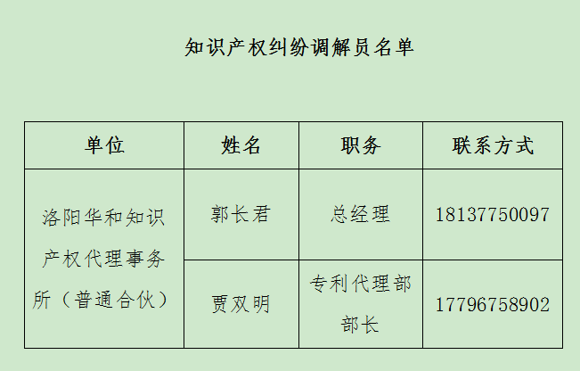 洛阳华合知识产权纠纷调解室服务中心人员详情
