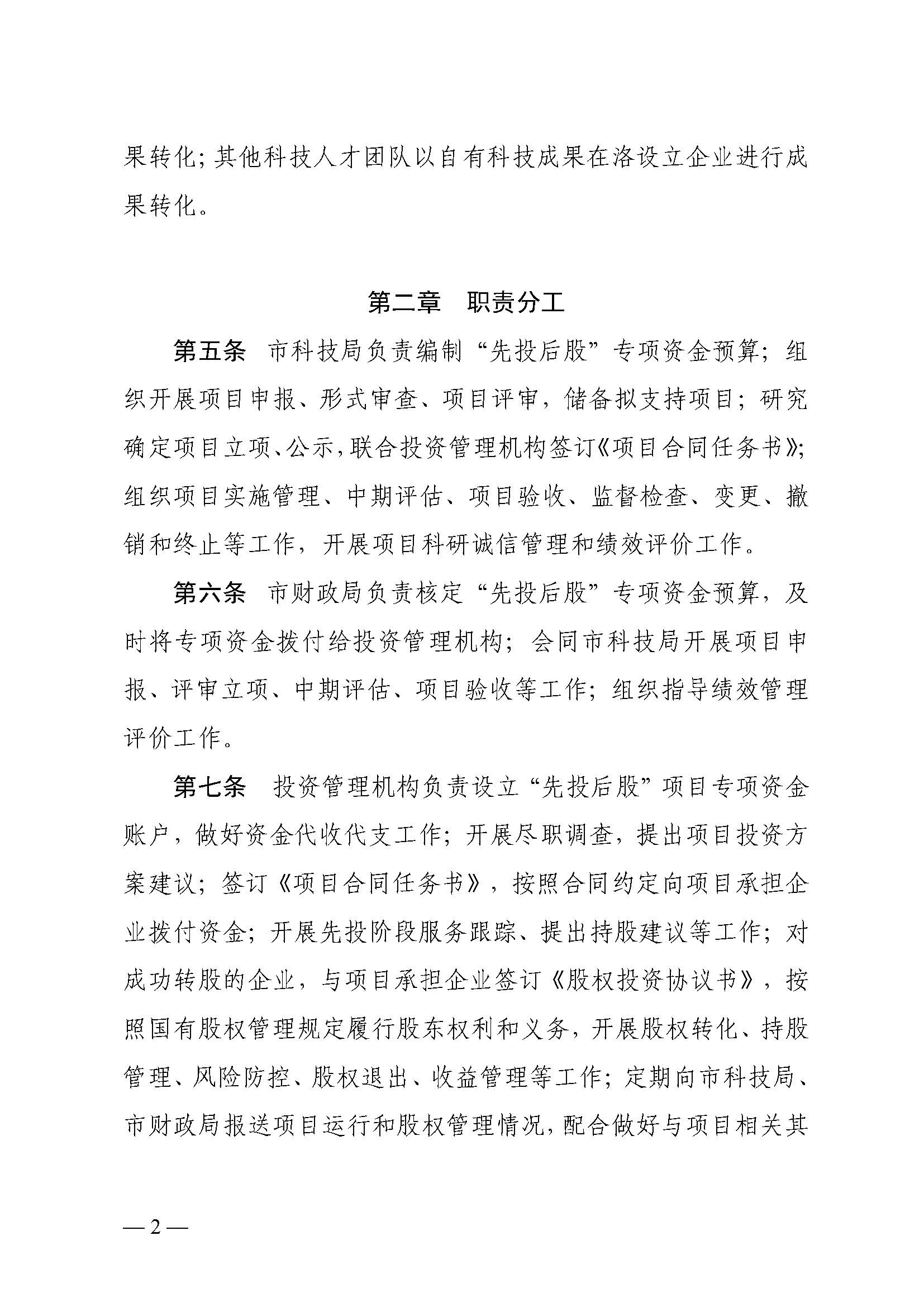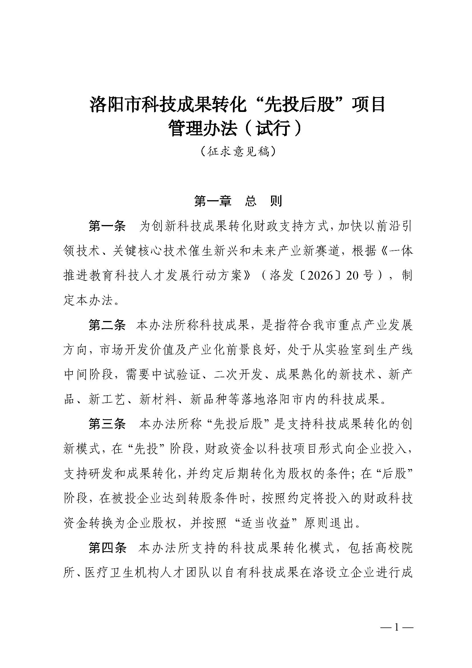 附件:洛阳市科技成果转化“先投后股”项目管理办法(试行)(征求意见稿)